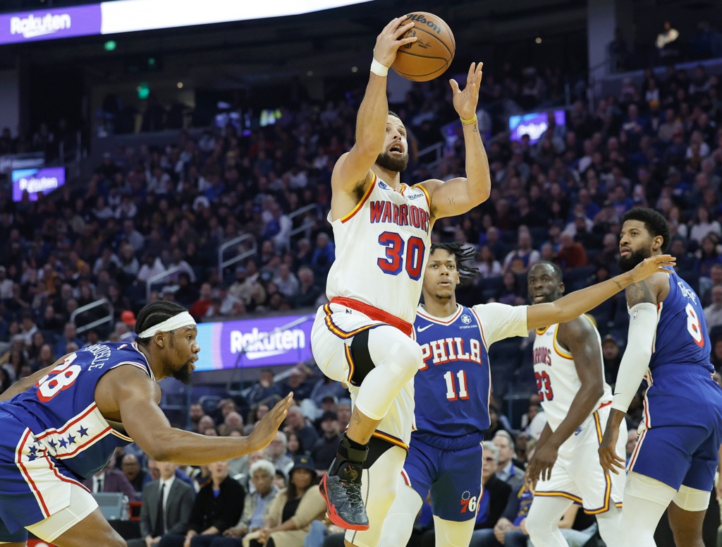 勇士对费城三巨头防守对位不吃亏,进攻端库里打得舒服带起了全民皆兵。费城76人的阵容配置不能无限换防,纳斯教练又要用恩比德的进攻,始终防不住勇士挡拆,这是此役最核心的关键。