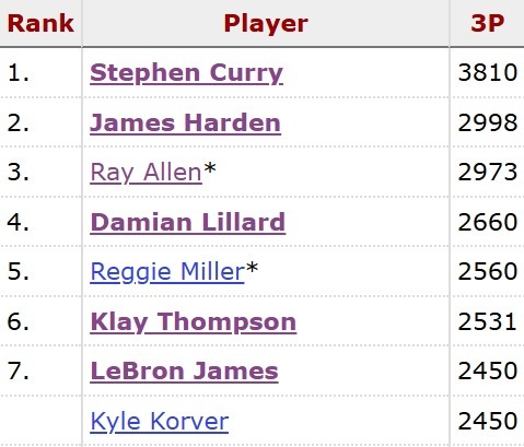 自詹姆斯生涯三分命中数追平科沃尔(2450、并列历史第七)之后,詹姆斯还没有再进过三分(近三战15中0)。