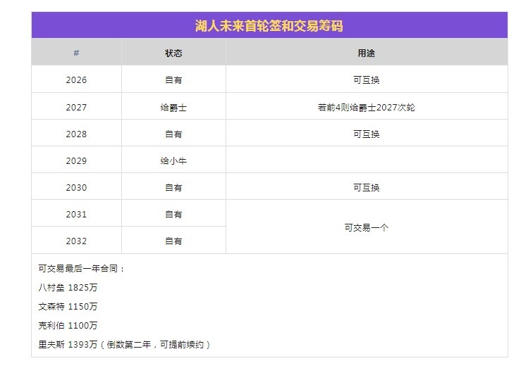 第二,新老板不愿意为下个赛季梭哈,这也包括未来7年可交易的一个首轮签。