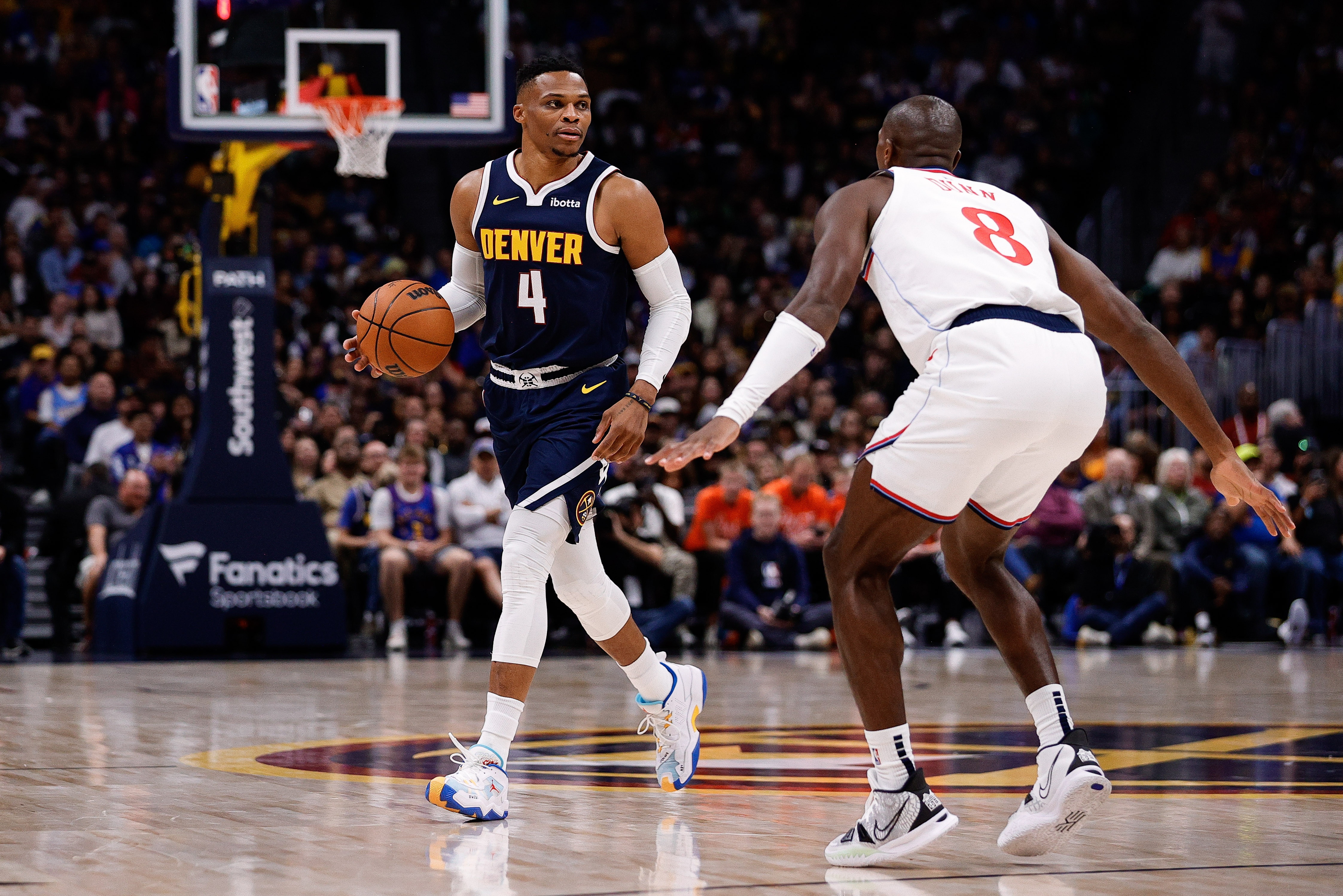 快船下半场重复着上半场的剧情,首发尚可和掘金四大主力掰手腕,但进入衔接段,班巴、科菲、海兰德、乔丹-米勒、小凯文-波特这些人继续被约老师+威少/穆雷+威少带领的轮换阵容穷追猛打。