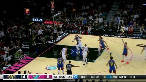 1月18日讯 NBA常规赛,掘金对阵热火,掘金上场输给火箭,热火最近遭遇2连败,不过巴特勒本场比赛解禁复出。开场后穆雷手感不错接连拿分,...