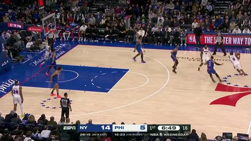 1月16日讯 NBA常规赛,76人主场迎战尼克斯。76人15胜23负排东部第11,尼克斯26胜15负高居东部第三。一开场,尼克斯率先发力,米卡尔-布里...