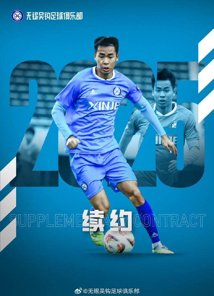 我们在此郑重宣布,经双方协商一致,无锡吴钩足球俱乐部与球员付浩、梁金虎完成续约。2025赛季,他们将继续为无锡而战!