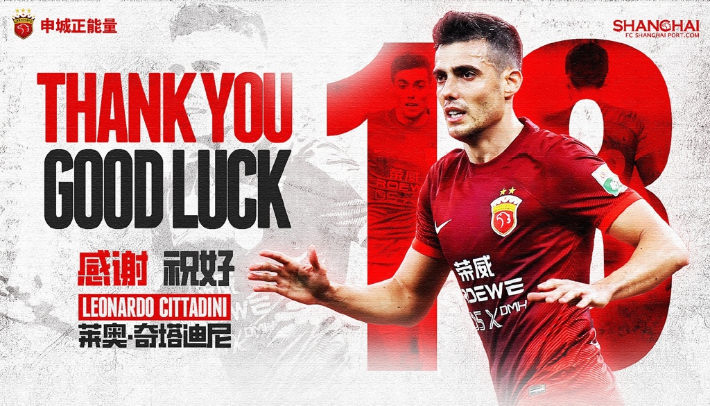 经友好协商,巴西球员莱奥·奇塔迪尼正式离队,俱乐部对球员表示衷心的感谢与祝福。