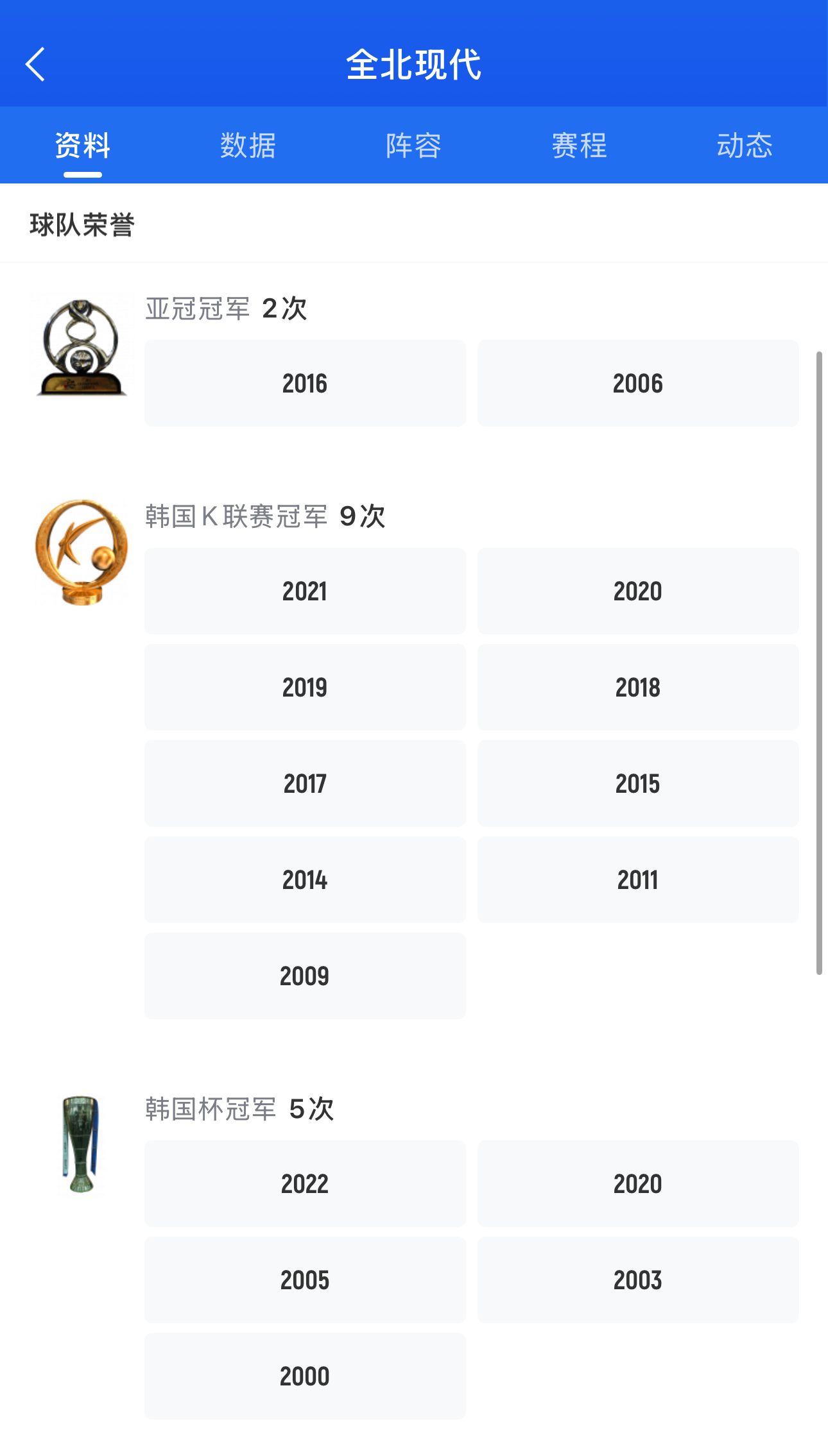 全北现代是K联赛传统豪门,曾9次拿到K1联赛冠军,5次获得韩国杯冠军,并且在2006年和2016年两次拿到亚冠冠军。