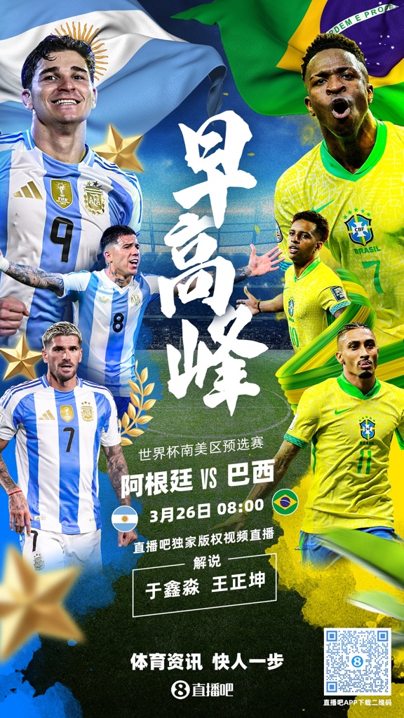 世预赛|阿根廷vs巴西首发:德保罗复出,阿尔瓦雷斯PK维尼修斯