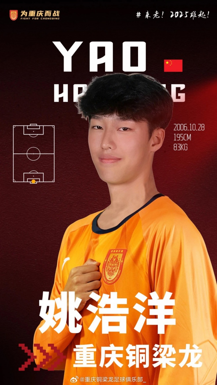 1月23日讯 重庆铜梁龙俱乐部官方宣布,门将姚浩洋租借加盟球队。官方公告如下按照赛季目标规划要求,以及教练组、技术团队充分考虑球队关...