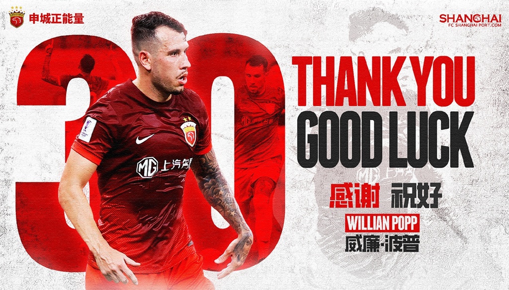 01月26日讯 上海海港官宣,外援波普和奇塔迪尼离队,此前海港已经官宣了奥斯卡离队,目前队内外援还剩古斯塔沃和茹萨。据此前报道,海港新...